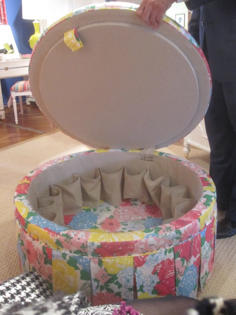The new genius invention of market: The Shoe Pouf. Who Knew? My hands were shaking, so my picture is blurry, but the gold shoe cabinet is the Carrie Bradshaw wanna be new must-have accessory. Barclay Butera is now our go-to for a more traditional with a modern twist client.