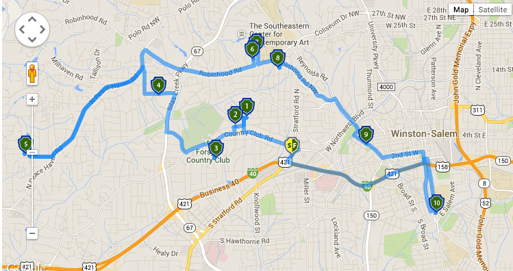 | Arrive at Stop 1 - 2655 Forest Dr. Winston Salem North Carolina |